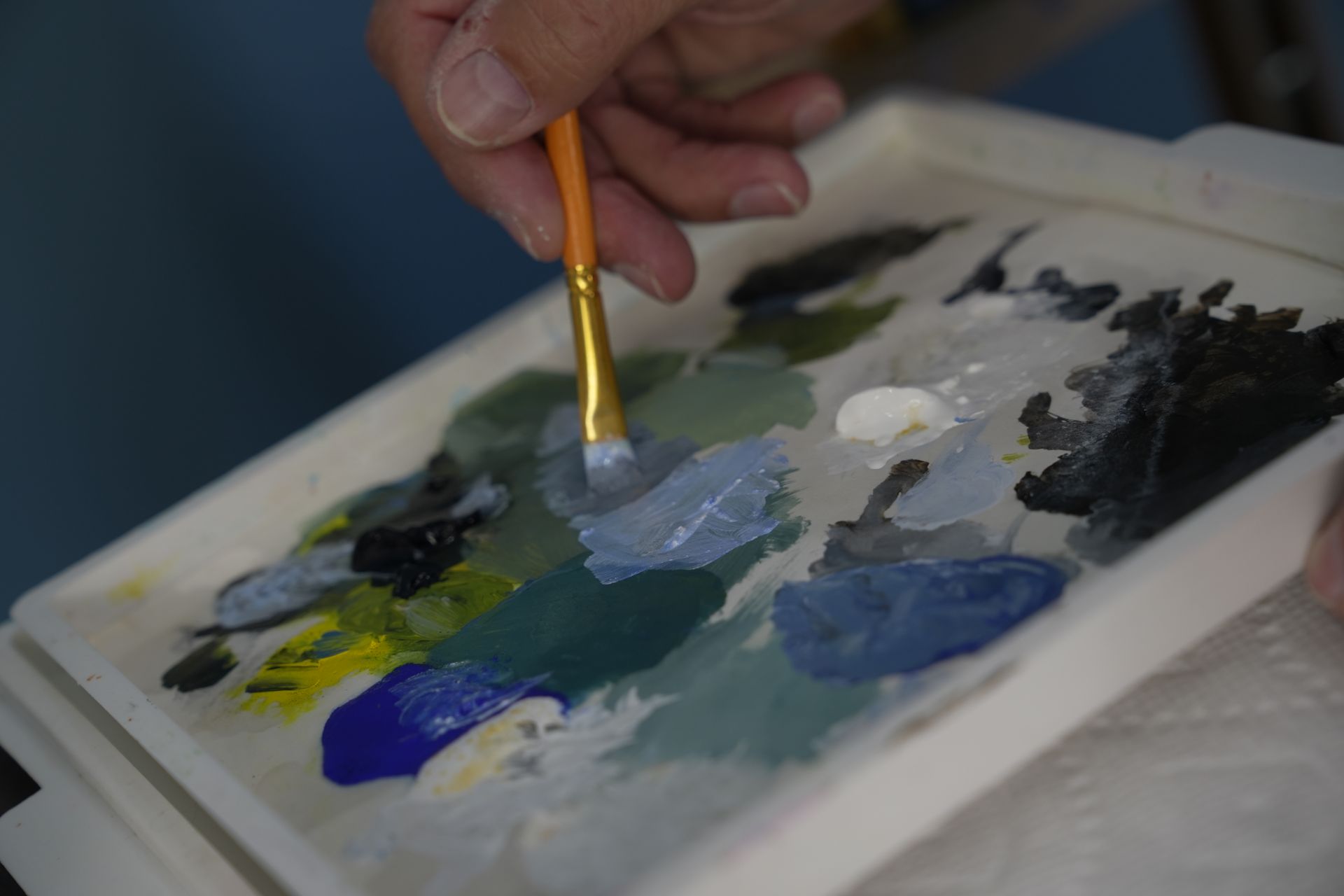 - Chose earth tones + sky colors to mirror his subject matter